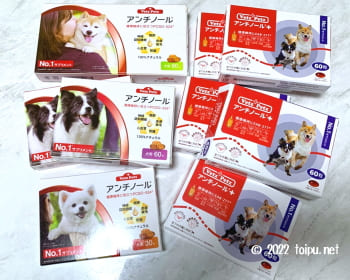 うちは2匹に飲ませているため、必要なアンチノールは1ヶ月60粒です。